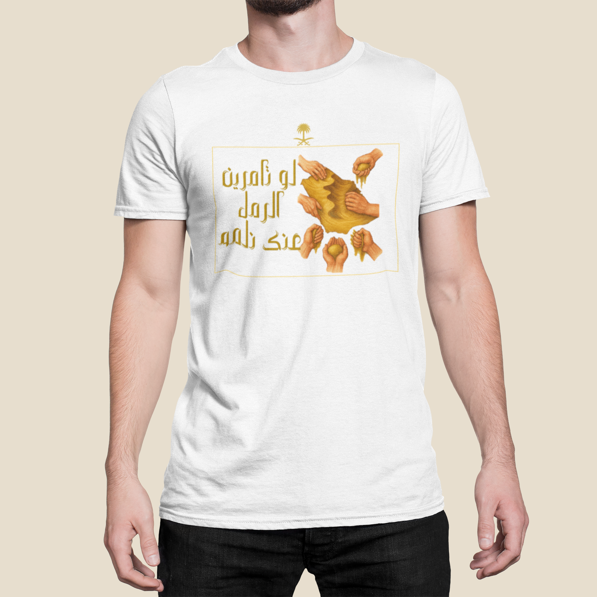تي شيرت يتميز بتصميم وطني قوي يعكس عمق الانتماء والفخر بالسعودية، مستوحى من روح شعب طويق الذي يقف صفًا واحدًا دفاعًا عن وطنه في كل وقت. قطعة أنيقة تجم...